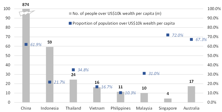 Note: “Middle classes” refers to population with greater than US$10,000 of wealth per capita; standard deviation calculation excludes Australia which is only included for comparative purposes